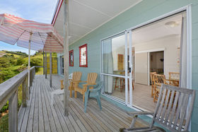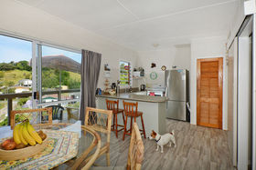 These totally unique and super tidy holiday homes over looking the clear waters of Pacific Bay are unlike anything else currently on the market. Ideal for two families with 2 kitchens, 2 laundries, 2 living rooms, 2 dining rooms, 6 bedrooms, double garage/workshop, bore water supply, and all within strolling distance to the bay below. Most furnishings and white-ware will be included, so just bring your boat, kayaks, food and refreshments and move right in. Pacific Bay is a tranquil and sheltered bay, ideal for launching the boat and also provides very safe swimming for the younger members of the family.